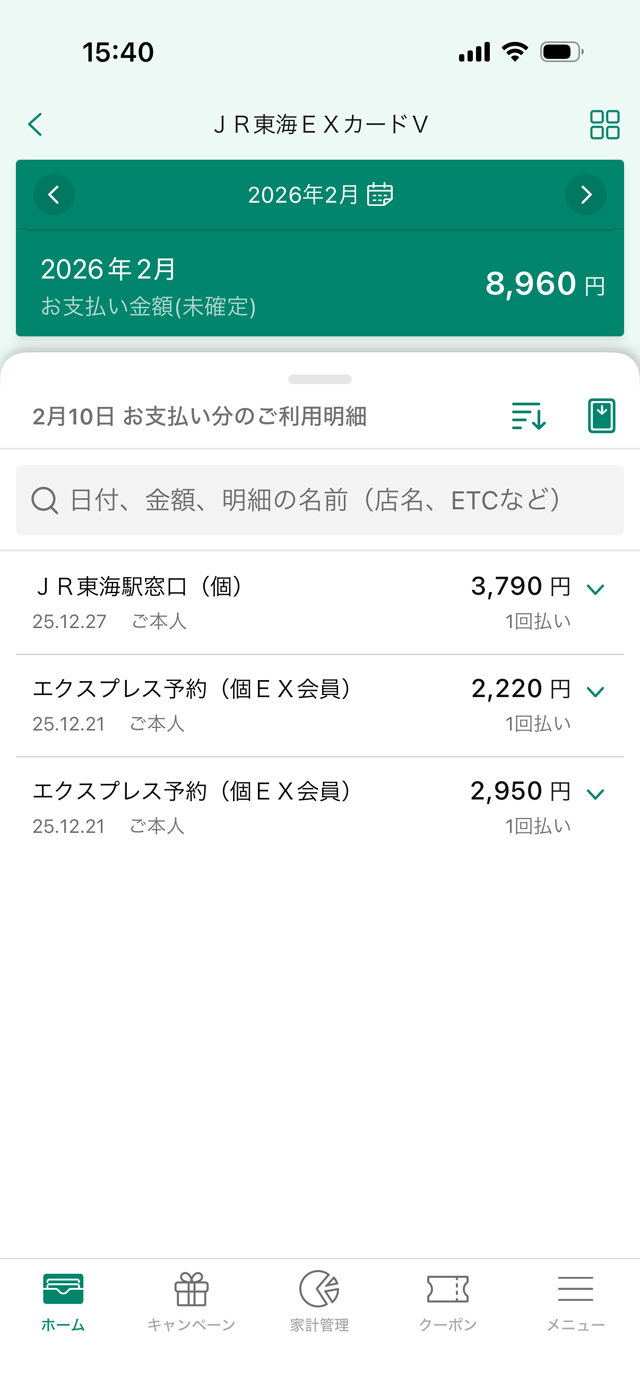● JR東海エクスプレス・カード(Visa・Mastercard)(三井住友カード)2026.01閲覧