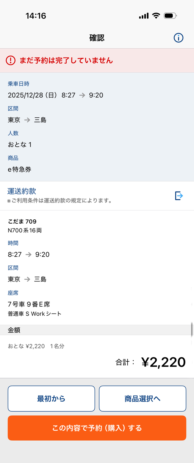 東海道・山陽・九州新幹線を利用する際は、EX予約であらかじめ「e特急券」を購入します。手帳割引が適用された普通乗車券については、同時に購入できません。そのため、まずは新幹線特急券を購入するという流れになります。