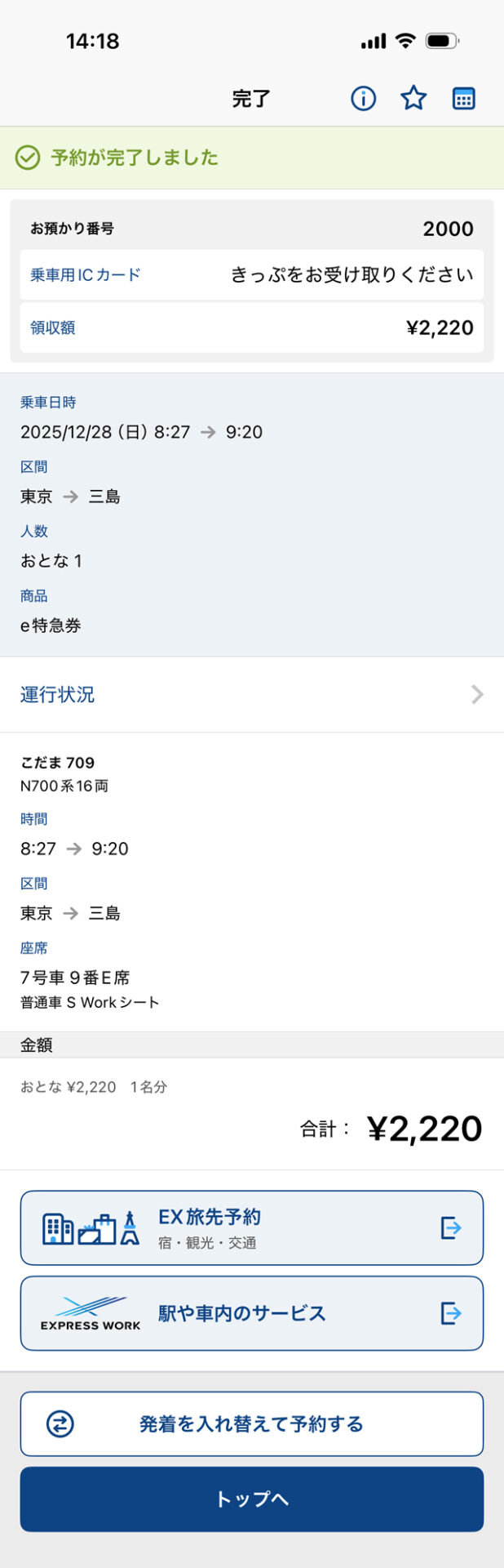 - EXアプリ:新幹線きっぷの予約購入および乗車変更
