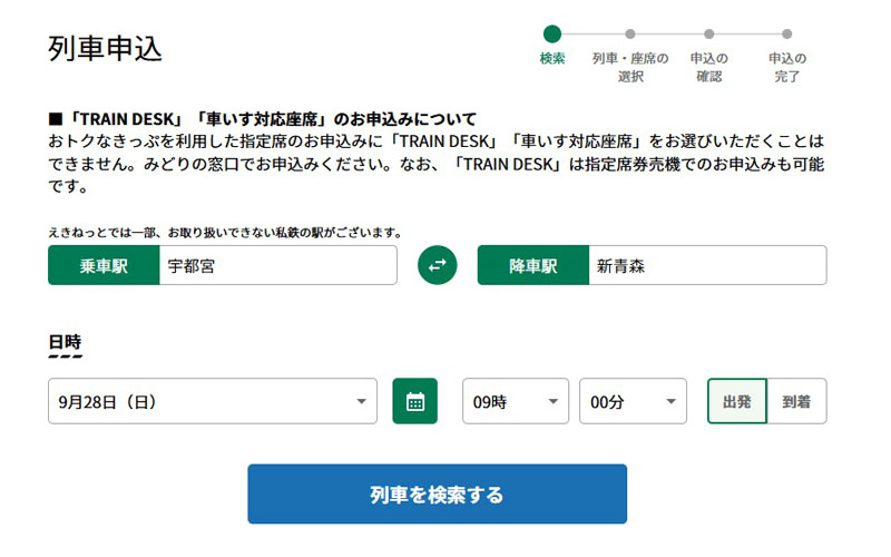この場合、仙台駅または盛岡駅で列車を乗り継ぐため、2回分の指定席予約枠を使わなければならないものと思ってしまうでしょう。しかし、このような場合における列車の乗り継ぎはユーザー事由ではないため、枠が1回分で済むようなルールがあります。