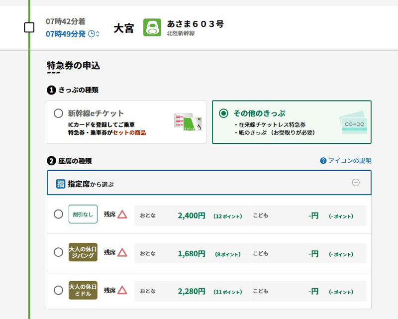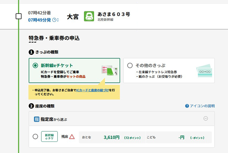 ただし、新幹線特急券については「東北新幹線・北海道新幹線」と「上越新幹線・北陸新幹線」を大宮駅で乗り継ぐ場合、「新幹線eチケット」と同様に料金をそれぞれ算出する形です。