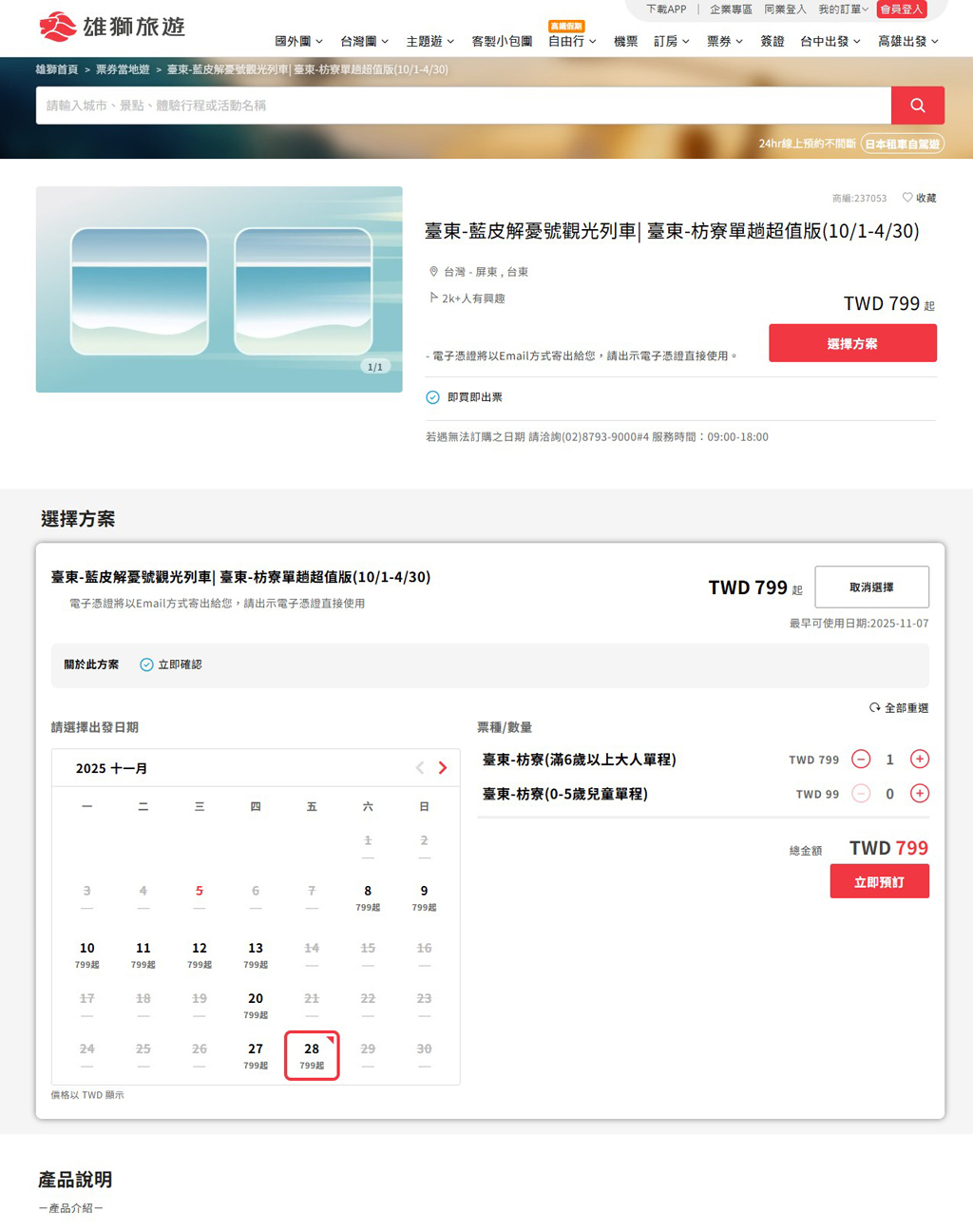 この列車の座席は「雄獅旅遊」の旅行商品として販売されているため、あらかじめ申し込む必要があります。